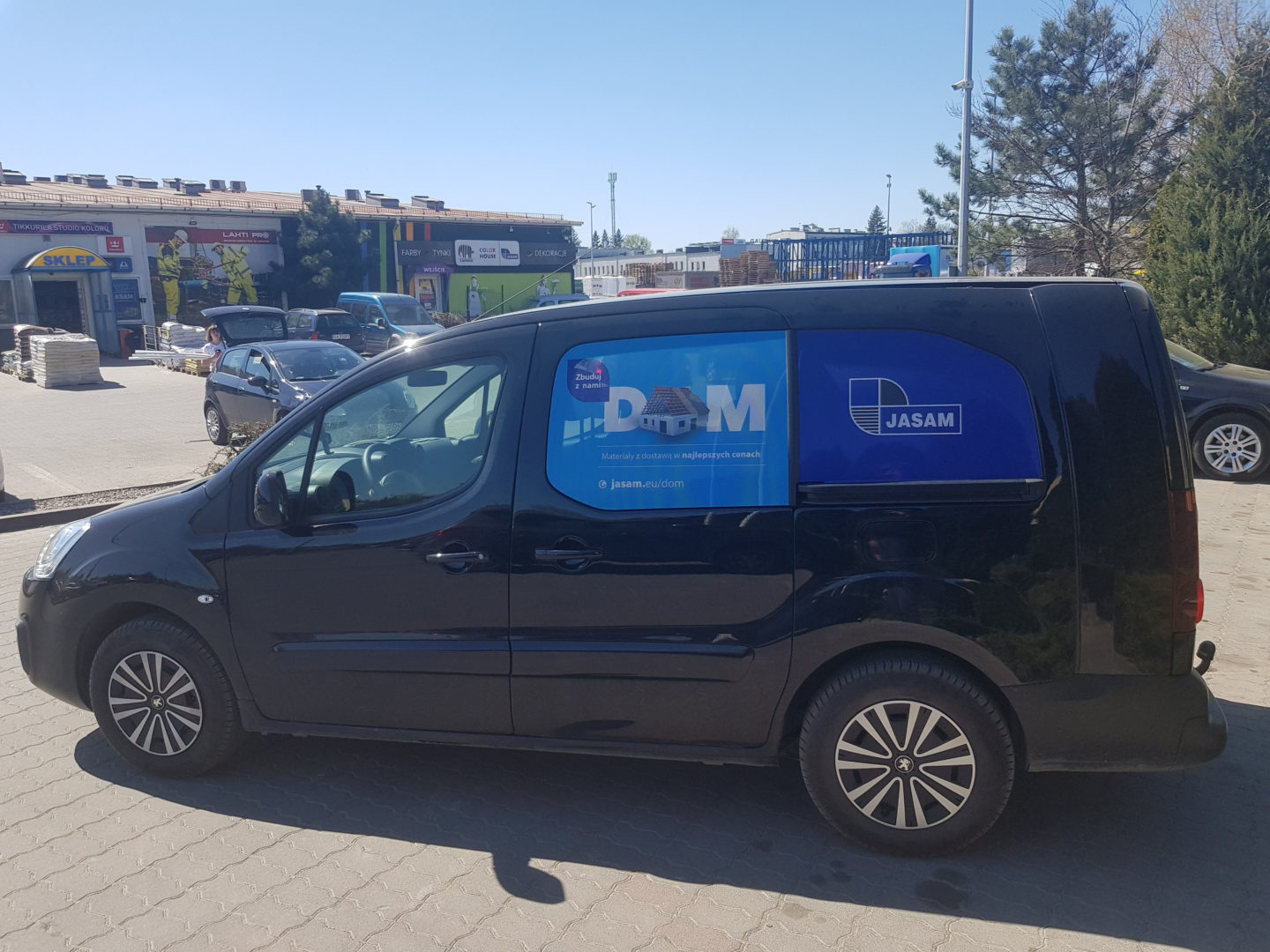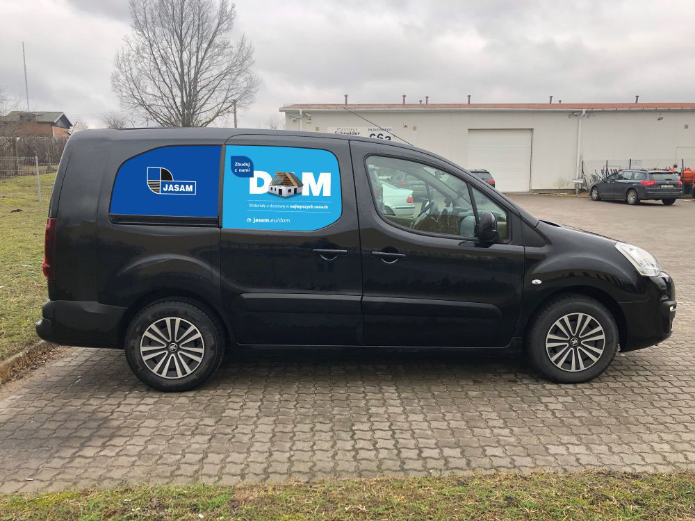 Kolejna realizacja dla marketów budowlanych Jasam z Olsztyna. Polegała na wyklejeniu samochodów. Efekt można zobaczyć na zdjęciach w galerii poniżej.